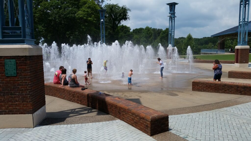 The park’s prime location at the base of the Renaissance Tower and adjacent to the Marriott Shoals Hotel and Conference Center ensures easy access and a picturesque setting. As you step into River Heritage Park, you’re greeted by sweeping overlooks of the Tennessee River and the iconic Wilson Dam, providing breathtaking views that change with the seasons. The park’s design thoughtfully integrates the region’s natural landscape with modern amenities, creating a welcoming environment for relaxation, play, and exploration. Families can enjoy the spacious picnic shelters, perfect for gatherings and outdoor meals, while children are drawn to the vibrant playground and the popular splash pad, which operates from May through mid-September, offering a refreshing escape on warm days. The splash pad’s interactive features, including music and water displays, create a joyful atmosphere for kids and parents alike.